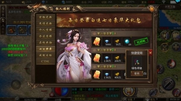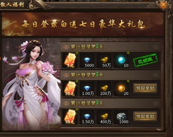 6、開啟散人福利,每天登錄白送七日豪華大禮包等